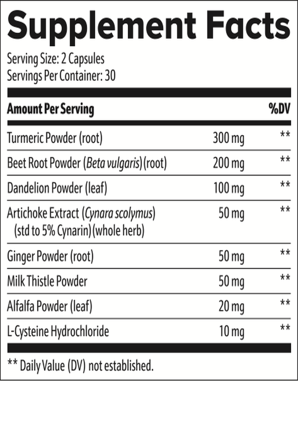 N-Acetyl Cysteine (200mg) serves as a glutathione precursor, the liver's primary antioxidant and detoxification molecule. NAC clinically protects against acetaminophen toxicity and supports heavy metal and environmental toxin elimination. Alpha-lipoic acid (100mg), both water and fat-soluble, neutralizes free radicals throughout liver cells while regenerating vitamins C and E.